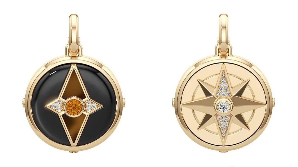The pendant, crafted in 14‑karat gold with black onyx, tiger eye, citrine and diamonds, reflects her personal journey and serves as a “North Star” for the brand.