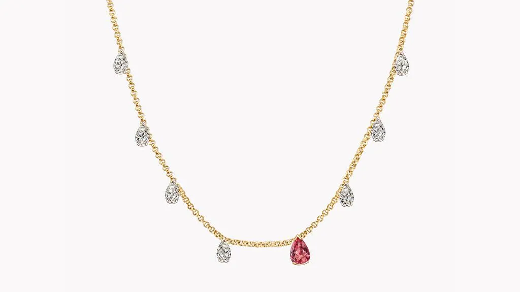 Белорусская теннисистка Арина Соболенко продемонстрировала, пожалуй, самые роскошные украшения летнего спортивного сезона. Чемпионка US Open носила кастомные изделия от Material Good, включая ожерелье, чокер и серьги, которые идеально сочетались с ее формой Nike. Персиково-розовый турмалин в ожерелье был закреплен восемью когтями, символизирующими восемь выступлений Соболенко на US Open. Чокер из желтого золота 18 карат инкрустирован восемью камнями, включая семь грушевидных бриллиантов общим весом 3,71 карата и имперский топаз весом 2,39 карата. Серьги с съемными подвесками содержали бриллианты общим весом 7,38 карата.