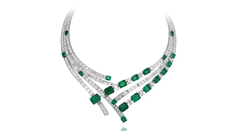 Picchiotti поразил высоким ювелирным искусством в necklace «Emerald Wonder». Двадцать два замбийских изумруда огранки «октагон» и бриллианты-багет в обрамлении белого золота 18 карат. Цена по запросу.