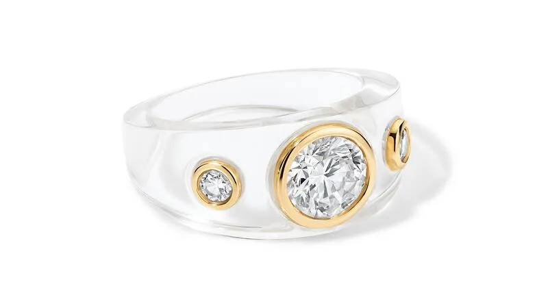 Шемла отмечает, что ее всегда завораживала реакция смолы на свет и цвет, ее текучесть и глубина. Сочетание смолы с бриллиантами создает уникальный баланс между классикой и современностью. «После того, как наши «Jelly» хупы [из коллекции «Loucite»] завоевали такую популярность, я решила вывести смолу на новый уровень, используя ее как основу для изысканных украшений, подчеркивающих прозрачность, текстуру и движение», — рассказывает она.