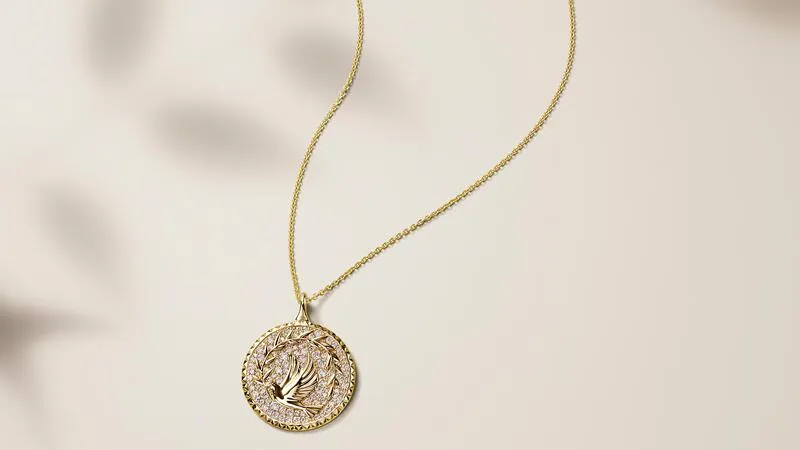 Новая коллекция, выпущенная во вторник, включает украшения из золота и искусственно выращенных алмазов с мотивом оливковой ветви — традиционного символа мира.