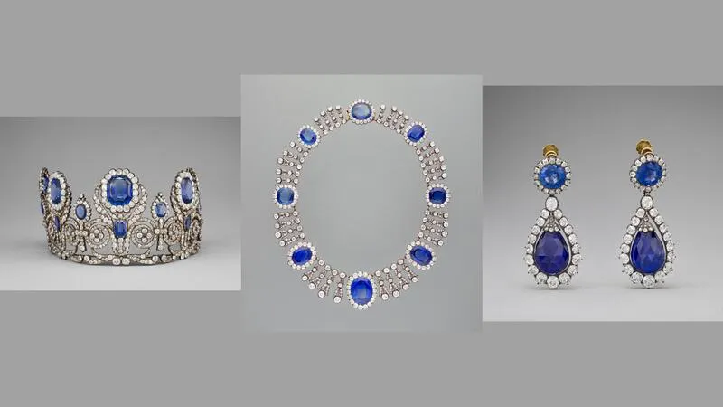 - Ожерелье из сапфирового гарнитура, носимого королевой Марией-Амелией и королевой Гортензией.