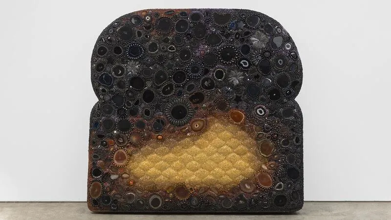 На выставке также представлены другие работы, выполненные из камней и бусин, изображающие различные стадии разложения. Две скульптуры высотой около двух метров, прислоненные к стене, одновременно напоминают выброшенные матрасы и огромные куски хлеба. "Sunset Strip" украшена узорами плесени в виде облаков, а "Starstruck" выглядит обожженной, почти полностью поглощенной распадом.