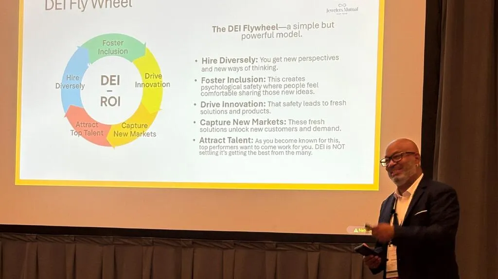 Боллинг провел одну из самых ярких сессий, объясняя, как разнообразие персонала помогает компаниям привлекать новых клиентов и избегать ошибок в рекламе. Он поделился личной историей о том, как критика мотивировала его стать экспертом в ювелирном деле.