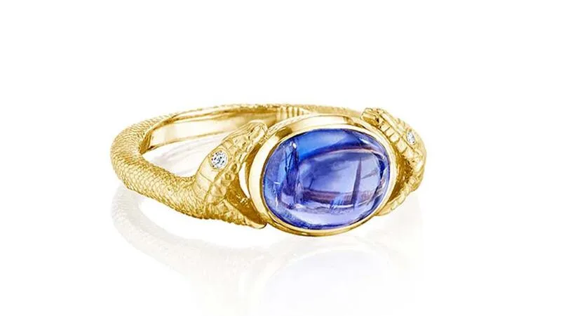 - Кольцо «Двуглавый змей» от Anthony Lent: Это уникальное кольцо из 18-каратного желтого золота украшено танзанитом и бриллиантами.